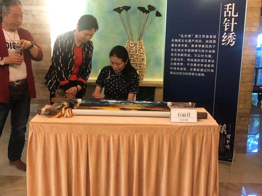 活动现场,秦淮灯彩、乱针绣、扬中竹编、太平泥叫叫、邮票拼贴画、天鹅绒织造技艺等众多非遗项目精彩亮相,琳琅满足的非遗作品吸引了众多嘉宾的驻足欣赏。或静或动、或简或繁的非遗元素向他们传递着故乡的工匠精神和对传统文化的牢牢坚守。受邀赴约的嘉宾中,有国内政界要人、行业专家学者、商界名流,如中国科学院院士包信和、吴宏鑫、中国工程院士钱锋、联想控股股份有限公司董事长柳传志、中国国家博物馆原副馆长陈履生等,还有一些活跃在美国、澳大利亚、香港等各界的精英翘楚。当他们品尝到国家级非遗项目“恒顺香醋”的养生产品时,连连发出感慨,他们说,在国外生活久了非常想念家乡的味道,尤其忘不掉这种“酸”味,故乡也许远隔千山万水,老家味道却时刻牵系心头。在另外一边的老物件展示区,嘉宾们看到了熟悉又陌生的黑白电视、缝纫机、樟木箱、搪瓷缸子、手拨电话,面对这些老物件,他们感叹着光阴的流逝,回忆着那时候简单而又快乐的生活往事。这些老物件或记录历史,或讴歌时代,或反映生活,每一件物品都是过去生活的缩影,但如今已然是一种旧时光的文化符号。